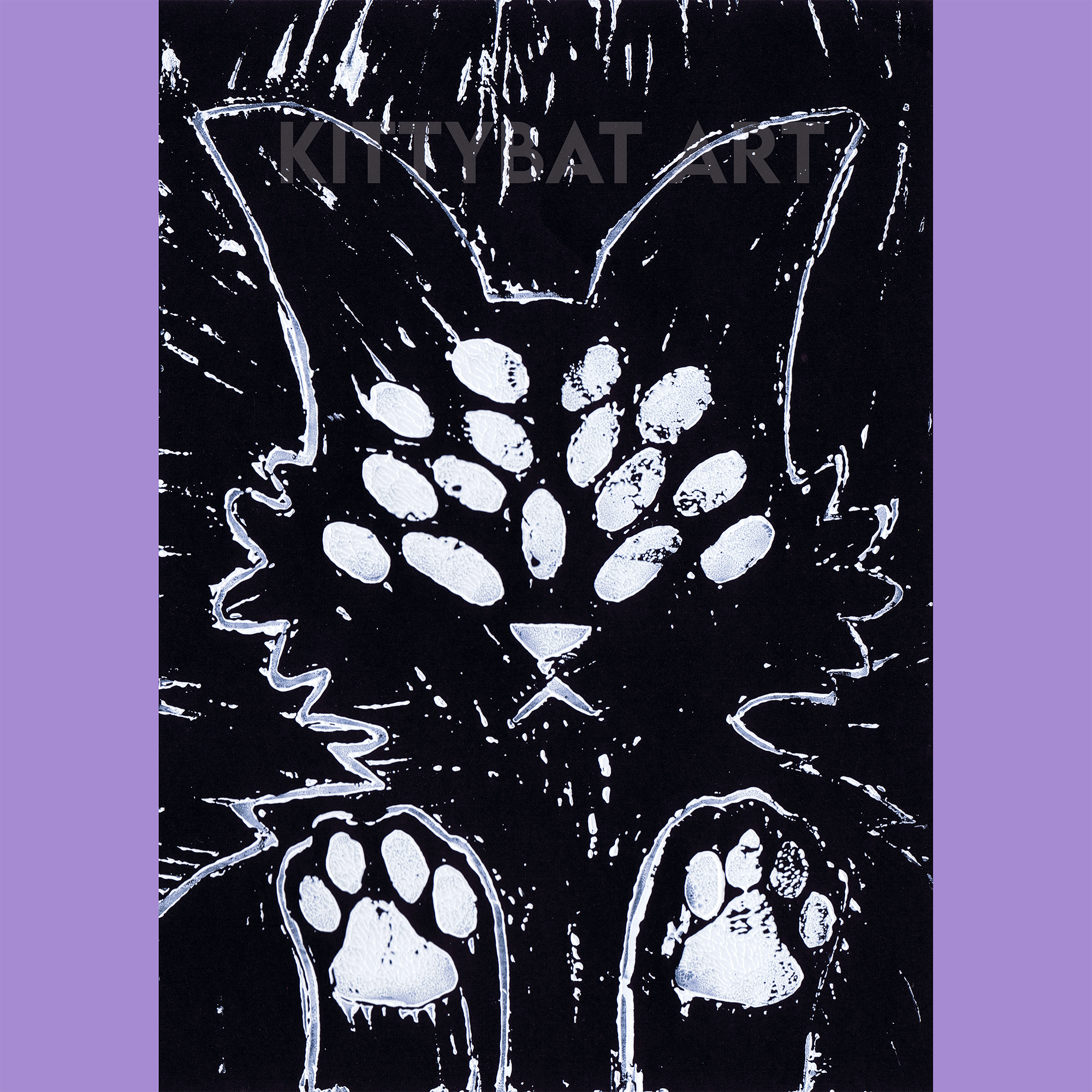 ‘demon kitty’ linoprint